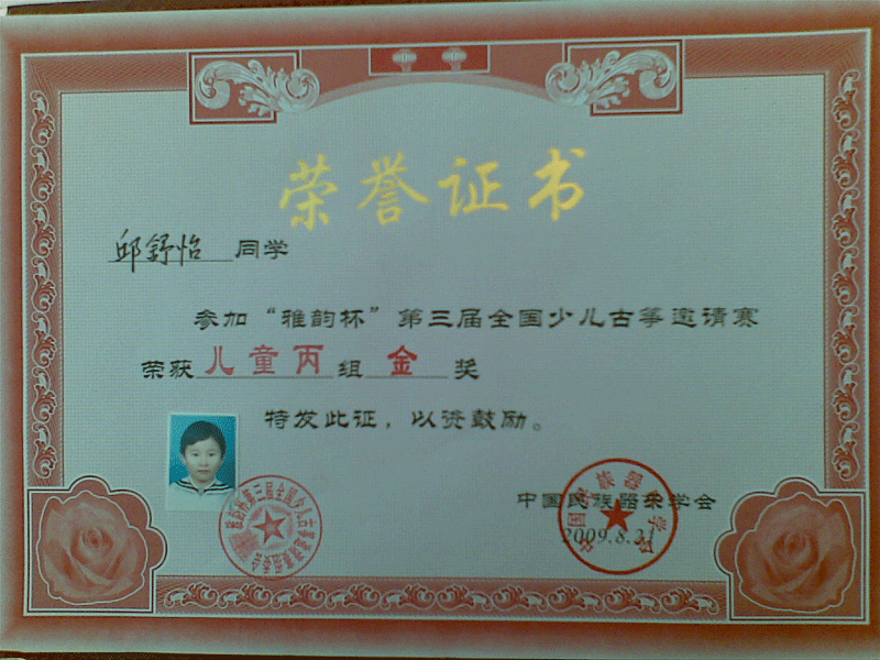 8月20--23日全國“雅韻杯”古箏大賽在南京舉行,昆山代表隊共有15名學(xué)員組成,參加5個(gè)級別的比賽,其中方新雨小朋友獲幼兒甲組金獎,邱舒怡小朋友獲兒童甲組金獎,朱靜蕓小朋友獲兒 童乙組金獎,再此向她們表示衷心的祝賀!